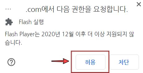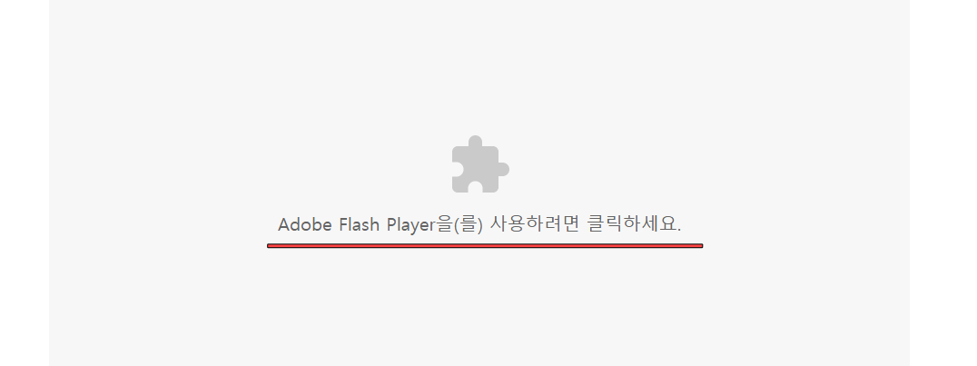 현재는 flash 실행 차단으로 설정되어 있기 때문에 사이트에서 사용되는 모든 플래시가 열리지 않습니다. 회색으로 되어있는 버튼을 눌러줍시다.