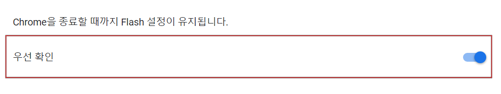 버튼이 파란색으로 활성화 되면서, 플래시를 사용하는 사이트 접속시 '우선확인' 하도록 적용되었습니다.