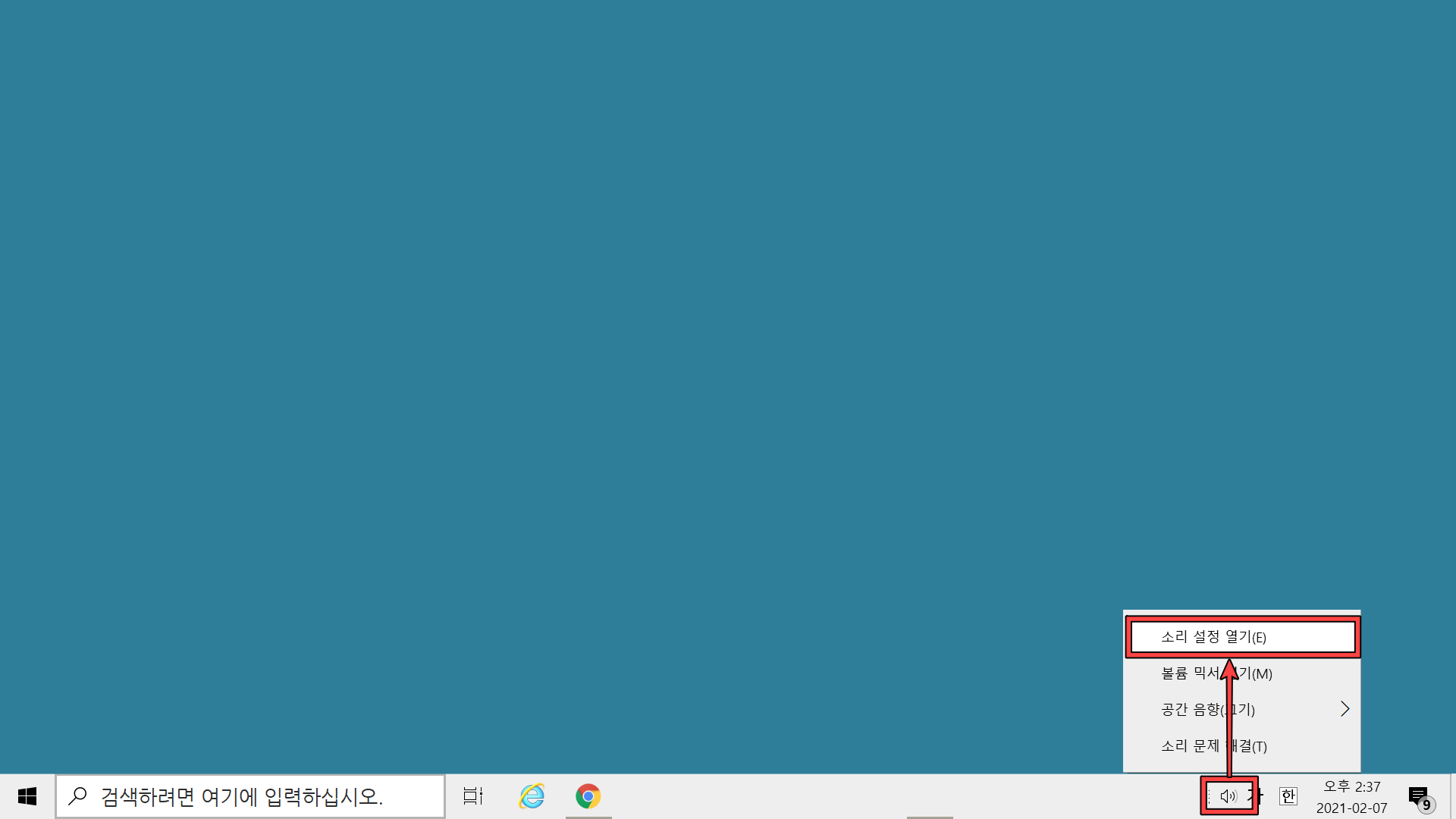 일단 윈도우10 작업표시줄에 보이는 스피커 모양 버튼을 마우스 우클릭 후 (소리 설정 열기)로 들어갑니다.