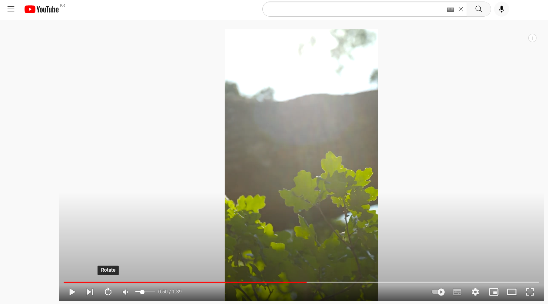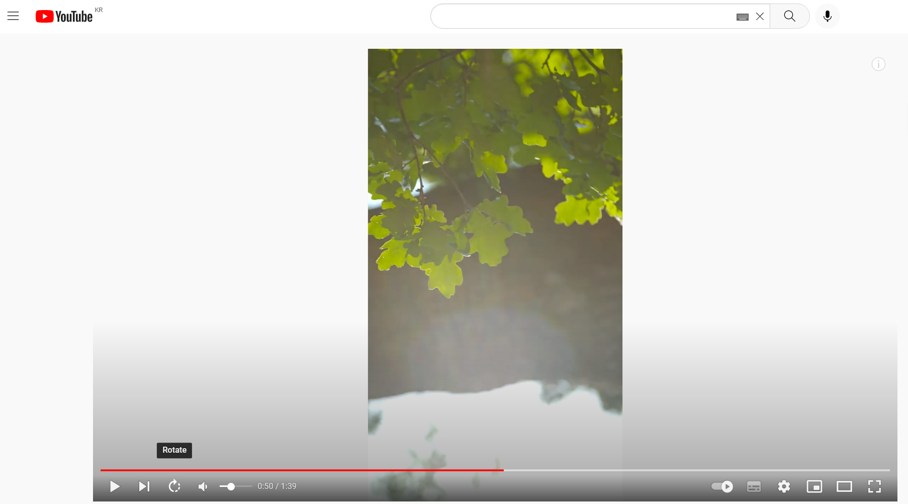 먼저 유튜브 영상을 회전하는 법에대해 알아보겠습니다. 이 기능은 가로로 고정되있는 화면을 세로로, 반대로 세로에서 가로로 전환이 가능합니다.