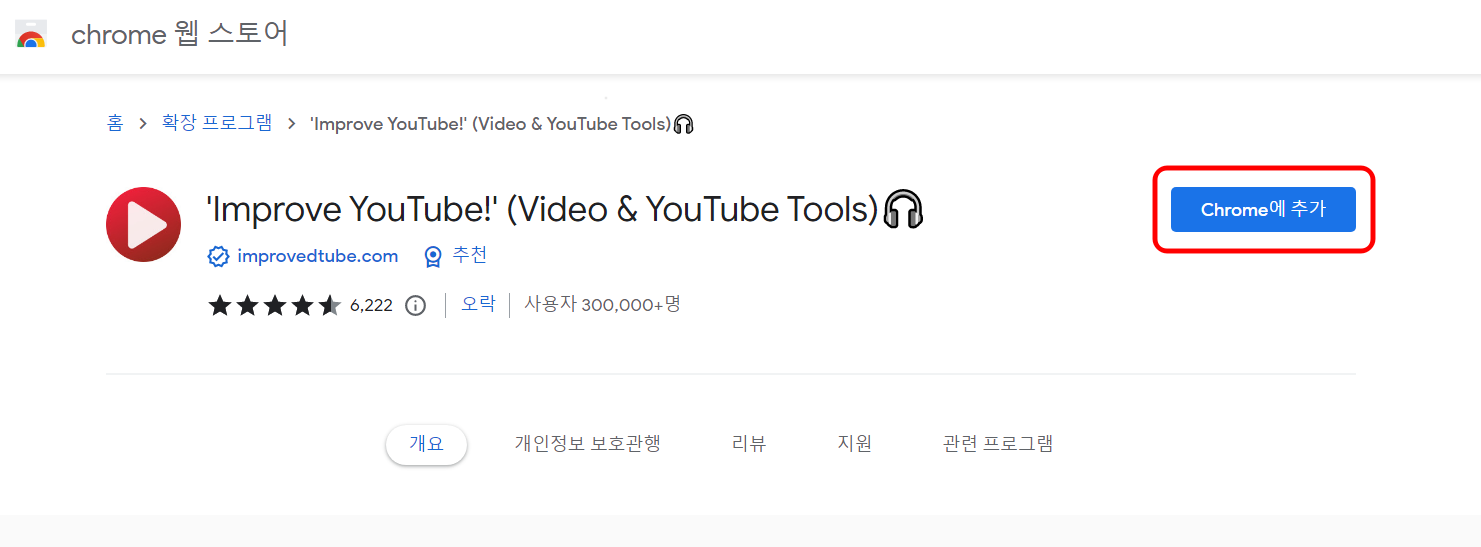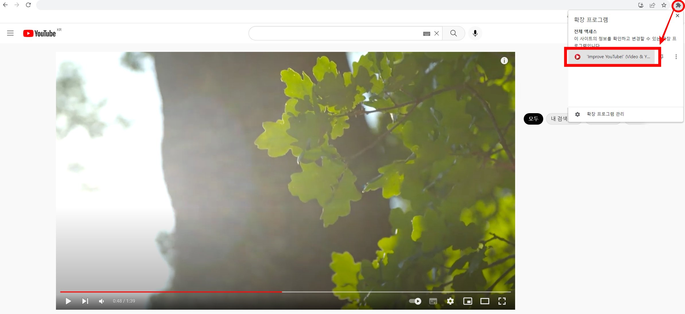 좌측 상단의 검색창에 improve youtube를 검색하면 해당 프로그램이 나오는데요, 사용하기 정말 간단하고 가볍기 때문에 추천드립니다.