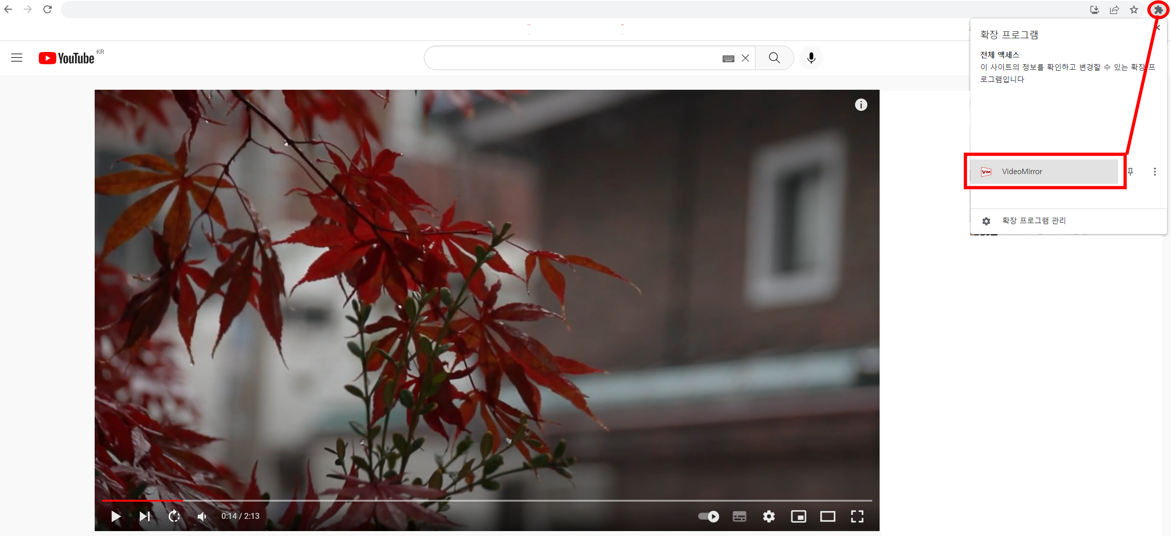 사용법은 정말 쉽습니다. 좌우반전을 원하는 유튜브 영상을 틀어놓고 방금 설치한 확장 프로그램을 실행해 주시면 됩니다.