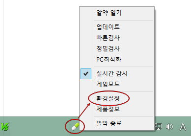 툴바가 아닌, 보안이나 관리 목적으로 알약을 설치하신 분이라면, 작업표시줄에 있는 알약을 마우스 오른쪽 클릭하여, 환경설정에 들어가보세요.